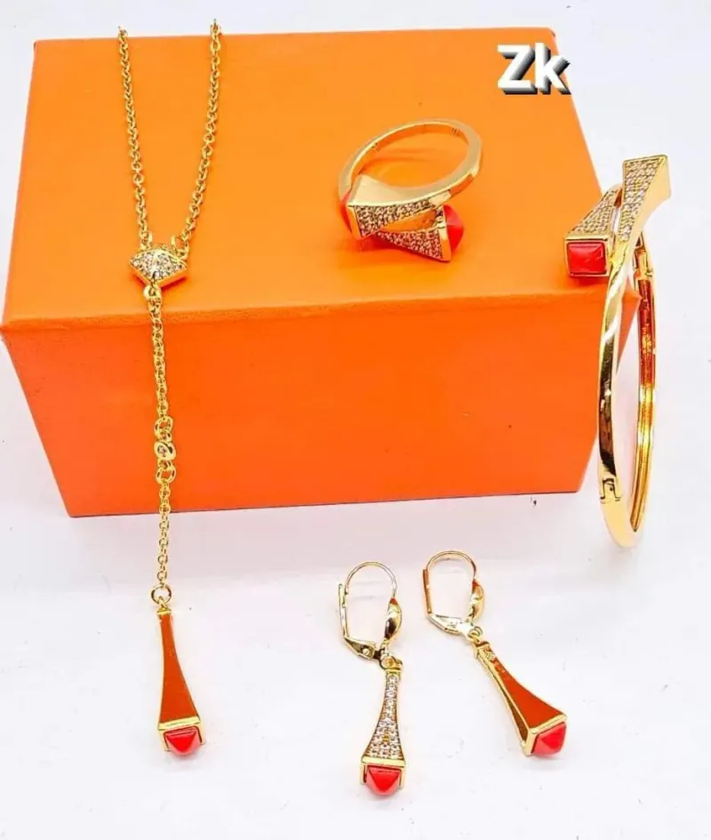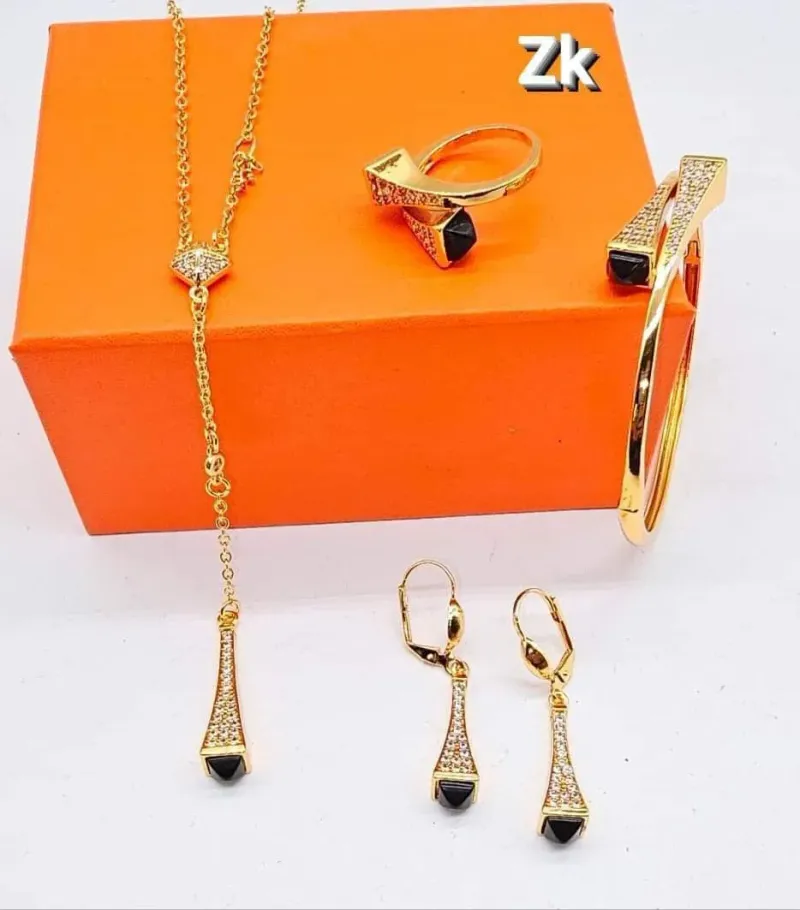 طقم مجوهرات متكامل يشبه الذهب 24 قيراط